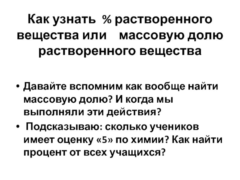 Слайд 8Как узнать % растворенного вещества или массовую долю растворенного вещества