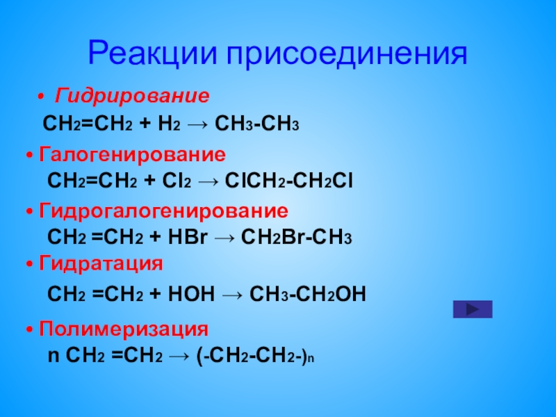 СН2 =СН2 + НВr → СН2Вr-СН3