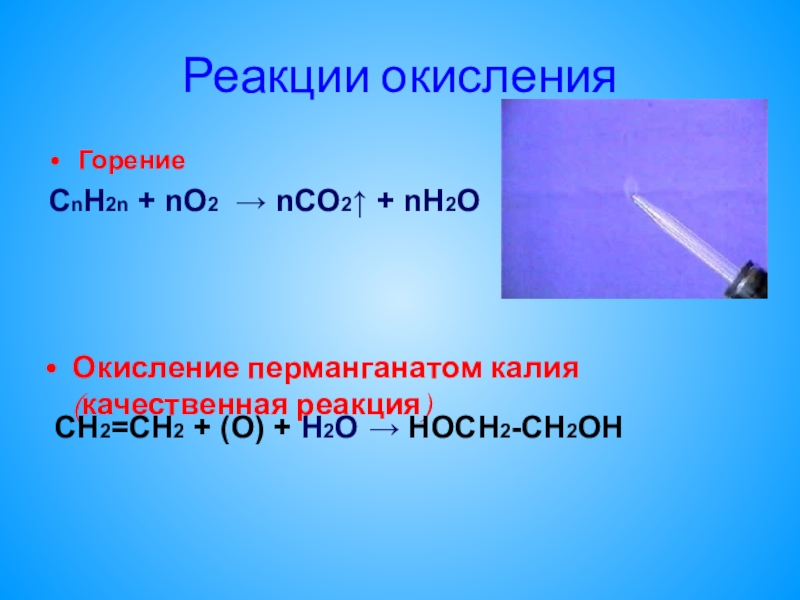 СН2=СН2 + (О) + H2O → НОСН2-СН2ОН