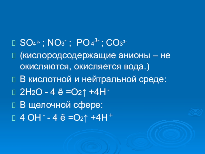4ОН- - 4 ẽ = О2↑+2 Н2О