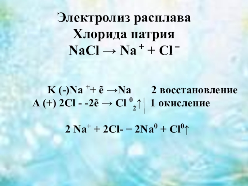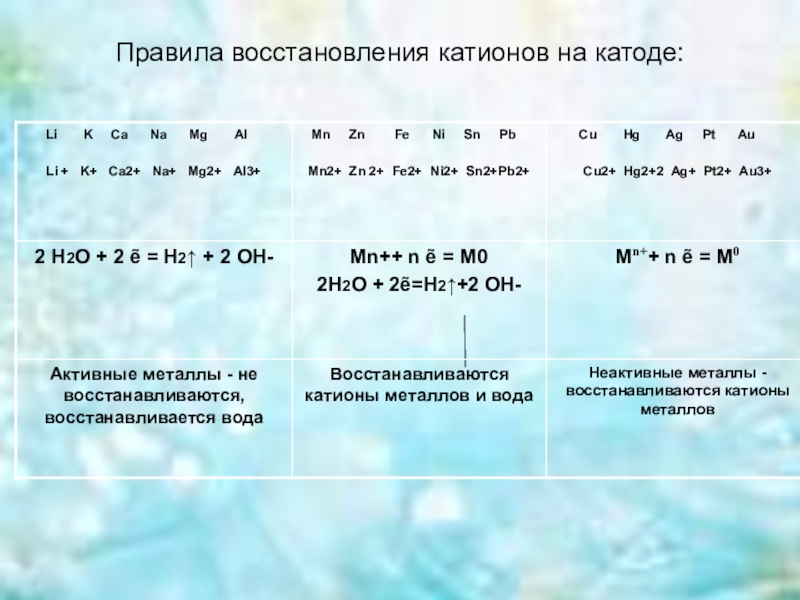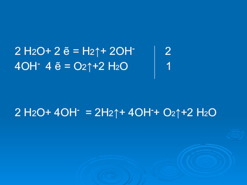 2 Н2О+ 2 ẽ = Н2↑+ 2ОН-