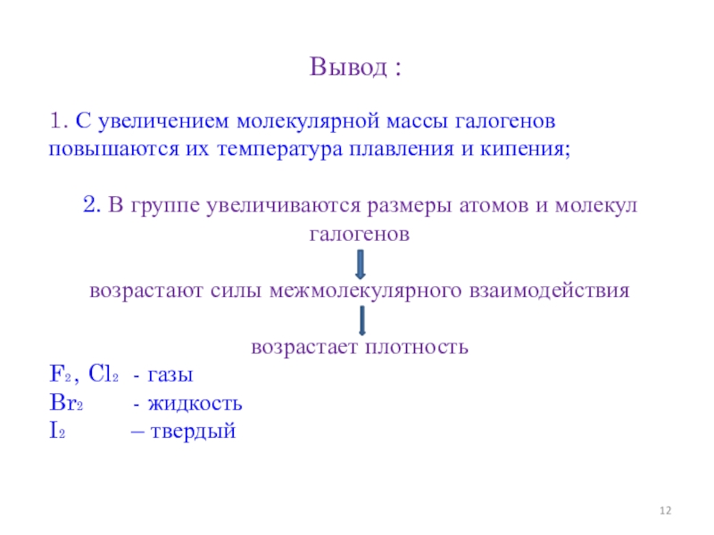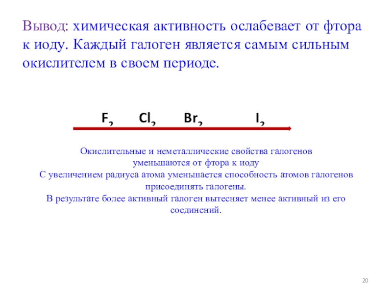 2. В ряду I2 → Br2 → Cl2 → F2 окислительные свойства