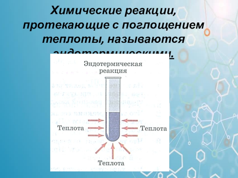 Слайд 11Химические реакции, протекающие с поглощением теплоты, называются эндотермическими.
