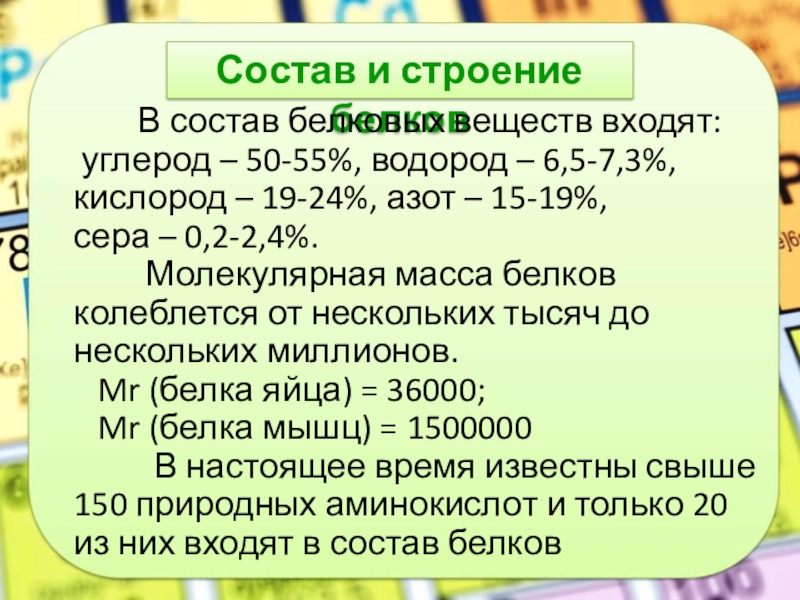 Молекулярная масса белков колеблется от нескольких тысяч до нескольких миллионов.