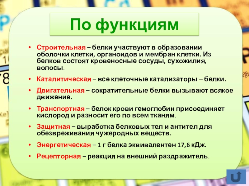 Строительная – белки участвуют в образовании оболочки клетки, органоидов и