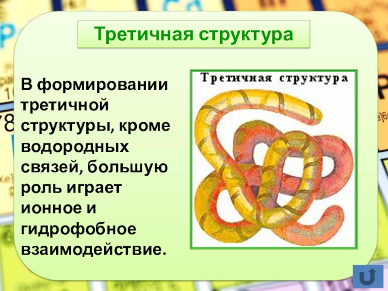 В формировании третичной структуры, кроме водородных связей, большую роль играет
