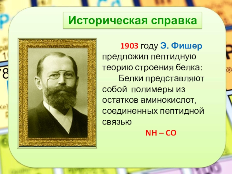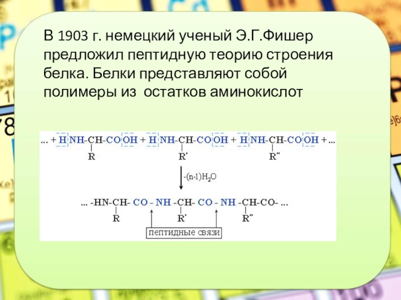 Слайд 12В 1903 г. немецкий ученый Э.Г.Фишер предложил пептидную теорию строения белка.