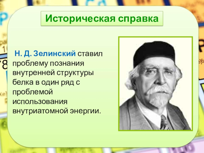Слайд 8 Н. Д. Зелинский ставил проблему познания внутренней структуры белка в