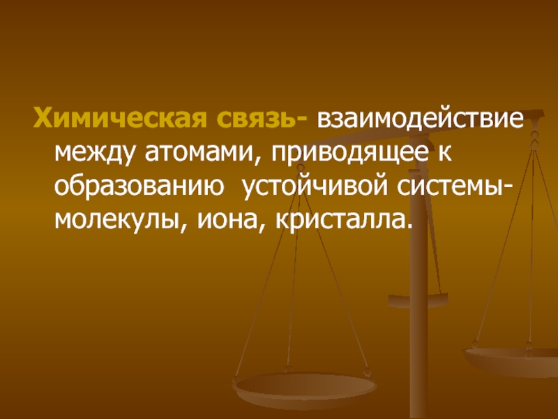 Слайд 4Химическая связь- взаимодействие между атомами, приводящее к образованию устойчивой системы- молекулы,
