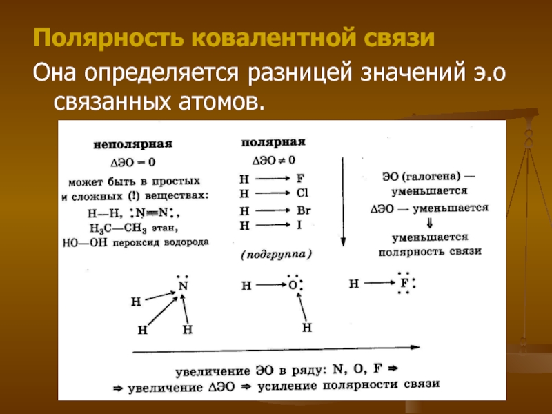 Полярность ковалентной связиОна определяется разницей значений э.о связанных атомов.