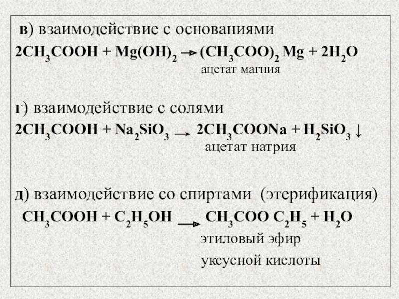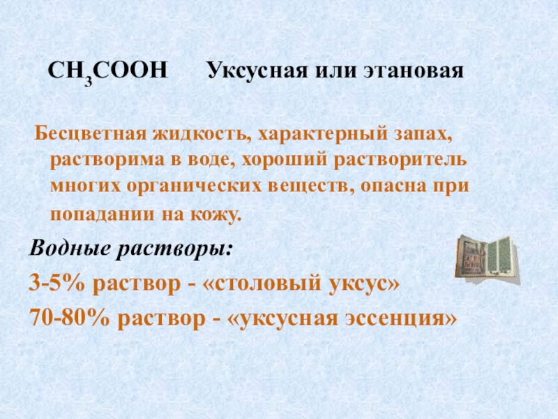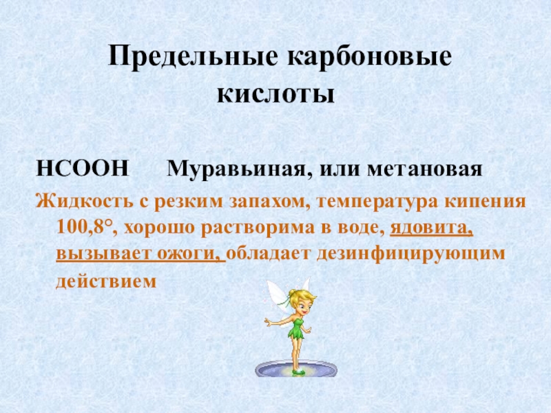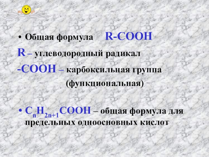Химические свойства карбоновых кислот определяются принадлежностью их к типу кислот.