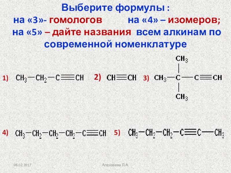 Общая формула представителей гомологического ряда алкинов: СnH2n-2