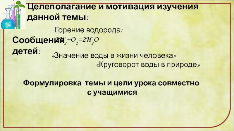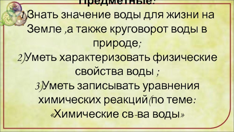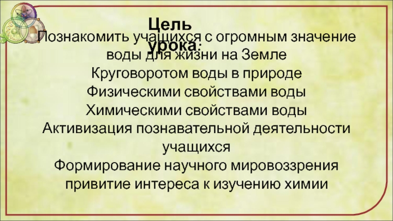 Тема: Вода. Физические свойства воды. Круговорот воды в природе. Химические свойства воды.