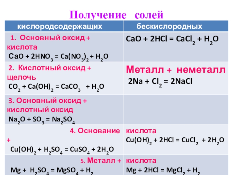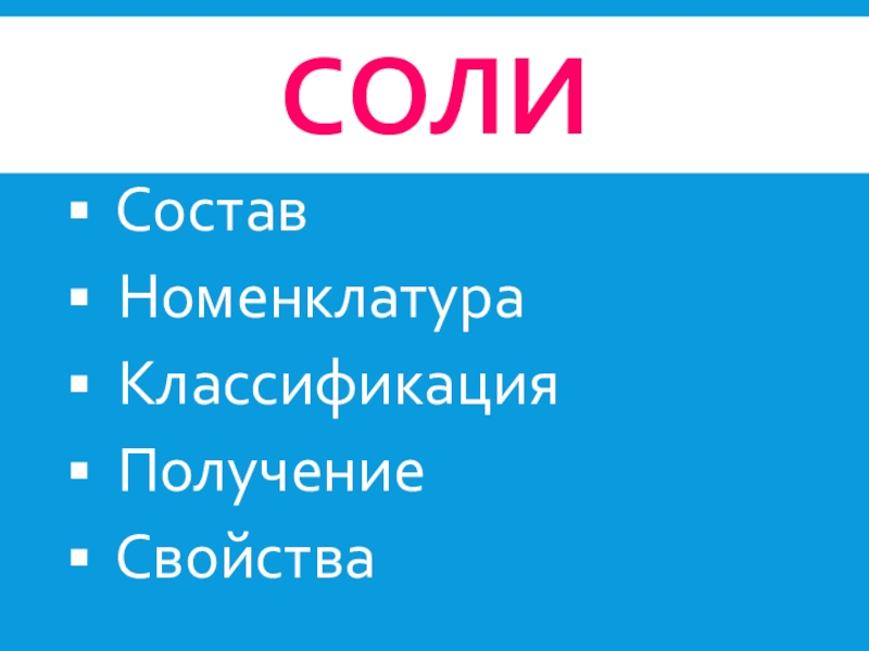 Презентация, доклад к уроку химии по теме Соли: состав, классификация, номенклатура, способы получения