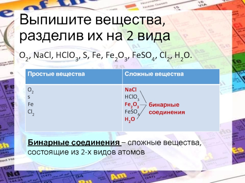 Бинарные соединения – сложные вещества, состоящие из 2-х видов атомов