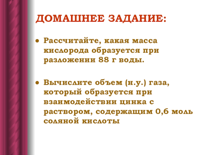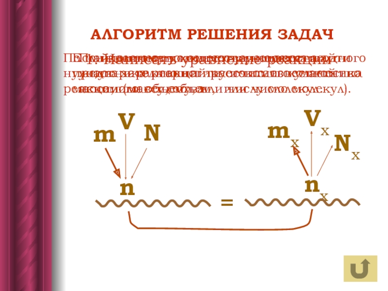 По найденному количеству вещества найти нужную характеристику искомого участника реакции (массу, объем, или число молекул).