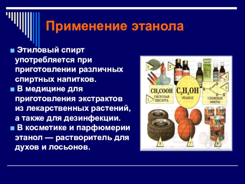Слайд 13Применение этанола