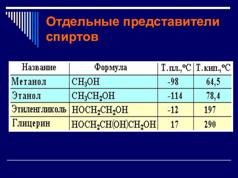 Слайд 9Отдельные представители спиртов