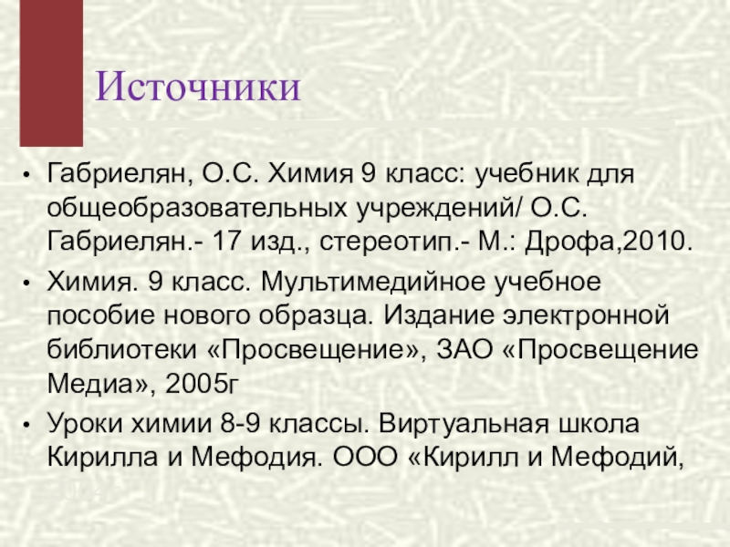 Габриелян, О.С. Химия 9 класс: учебник для общеобразовательных учреждений/ О.С. Габриелян.-