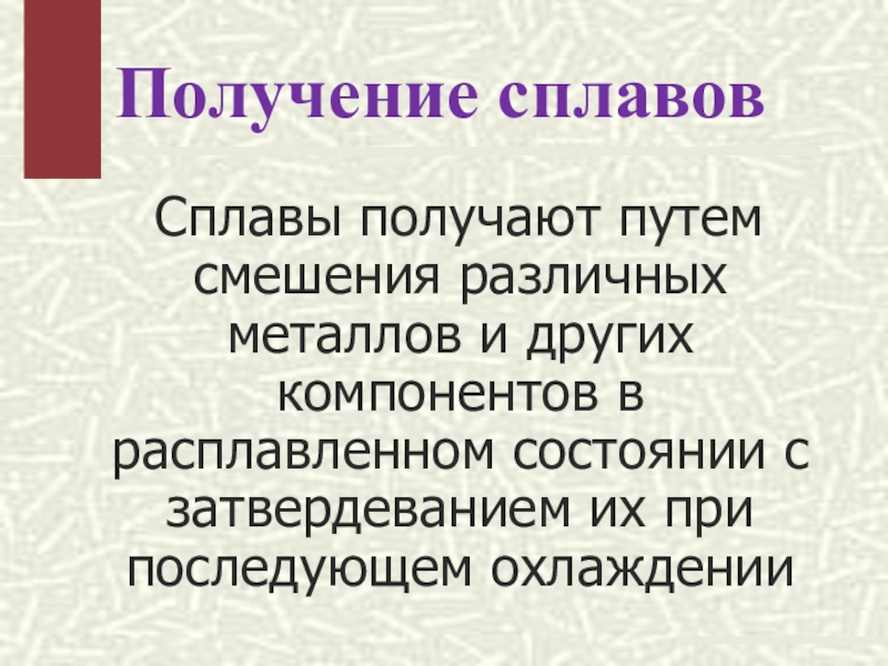 Расплавленные металлы смешиваются между собой в любых отношениях, но при охлаждении образуют сплав, состоящий из мельчайших отдельных кристалликов каждого из металла
