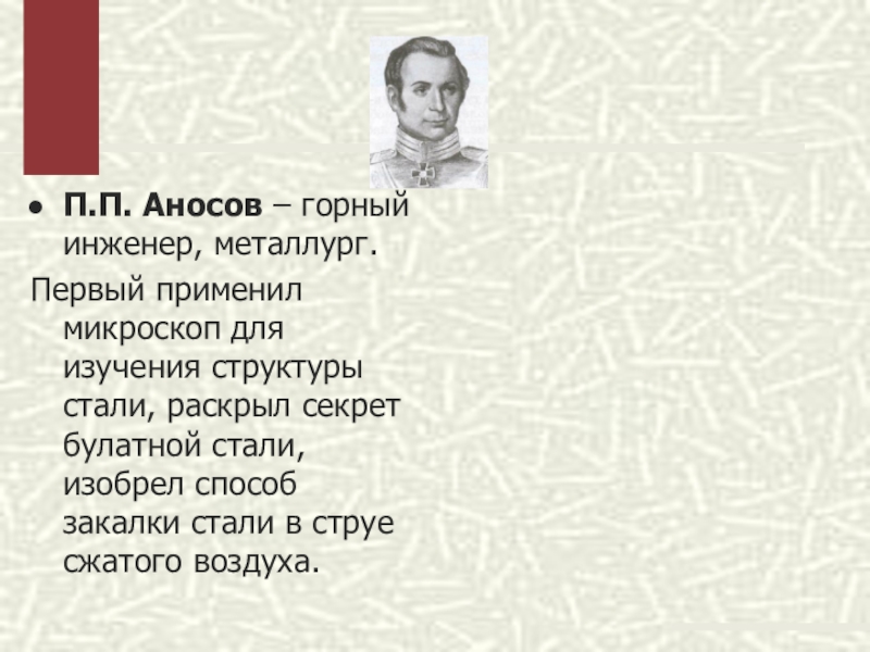 Слайд 18П.П. Аносов – горный инженер, металлург.