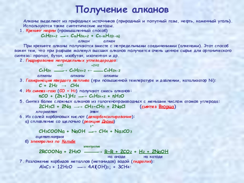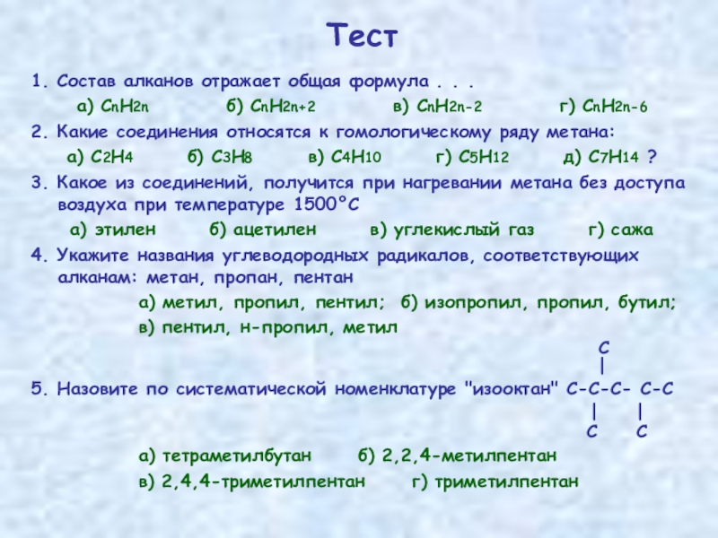 Алканы – углеводороды с общей формулой СnH2n+2,