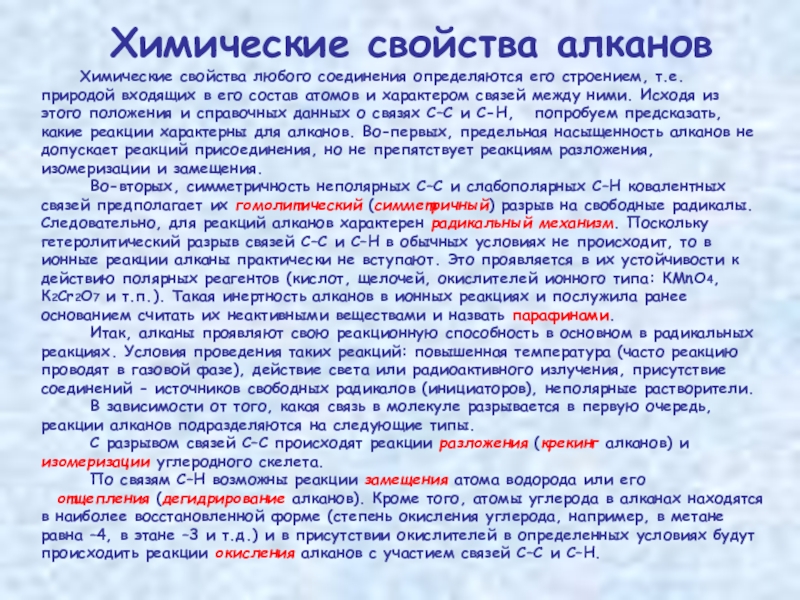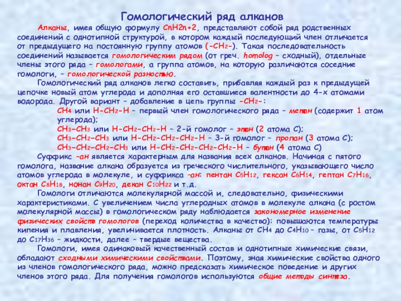 Алканы, имея общую формулу СnH2n+2, представляют собой ряд родственных