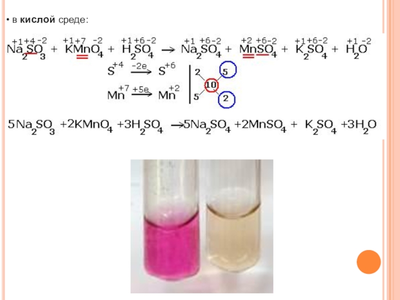 ЛАБОРАТОРНАЯ РАБОТА   Окислительные свойства KMnO4  в различных средах Задание.Изучите взаимодействие сульфита натрия c перманганатом