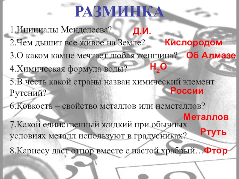 7.Какой единственный жидкий при обычных условиях металл используют в градусниках?