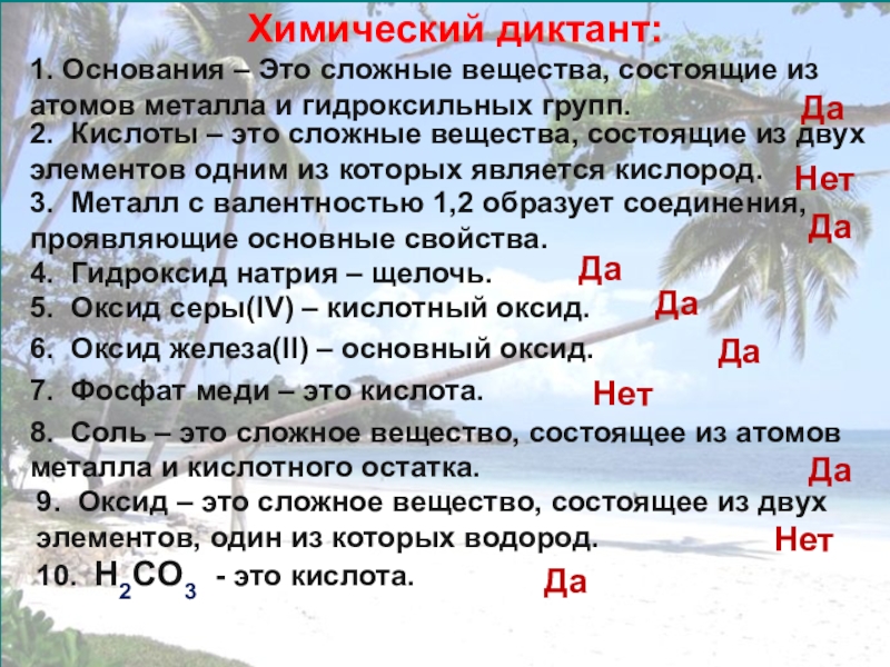 2. Кислоты – это сложные вещества, состоящие из двух элементов одним из которых является кислород.
