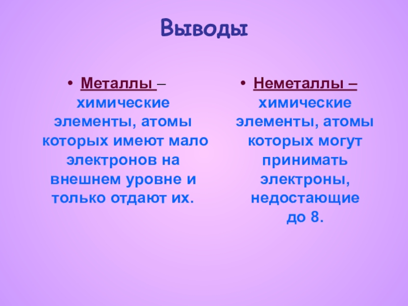 Неметаллы – химические элементы, атомы которых могут принимать электроны, недостающие