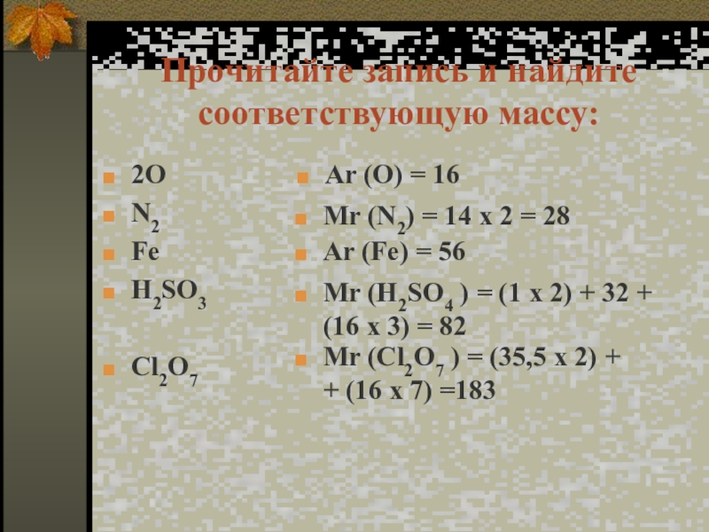 Mr (H2SO4 ) = (1 х 2) + 32 +