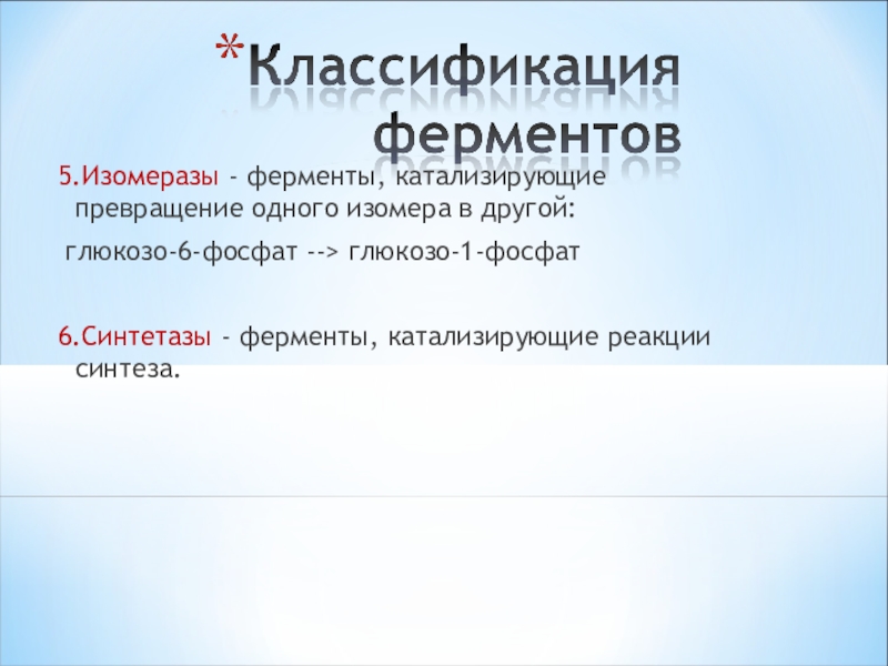 6.Синтетазы - ферменты, катализирующие реакции синтеза.