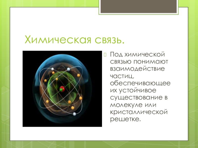 Под химической связью понимают взаимодействие частиц, обеспечивающее их устойчивое существование