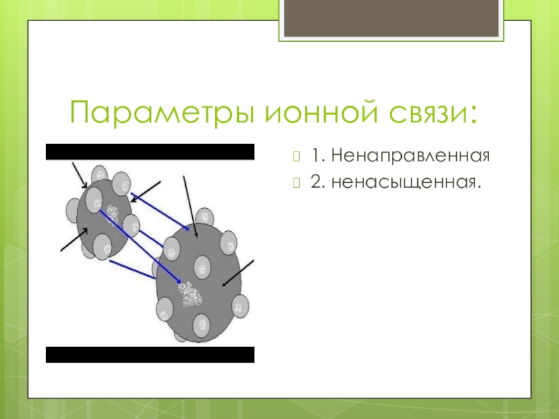 Параметры ионной связи:1. Ненаправленная2. ненасыщенная.