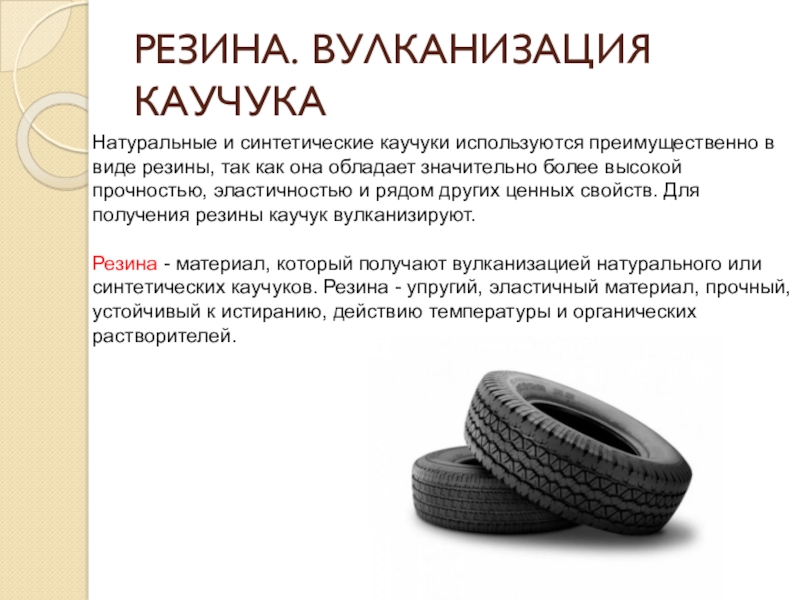 Слайд 11РЕЗИНА. ВУЛКАНИЗАЦИЯ КАУЧУКА