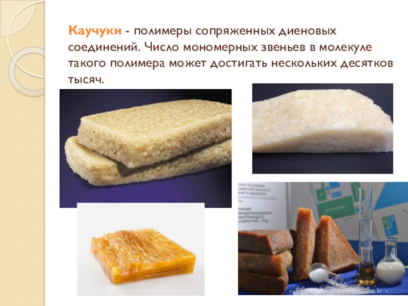 Каучуки - полимеры сопряженных диеновых соединений. Число мономерных звеньев в молекуле