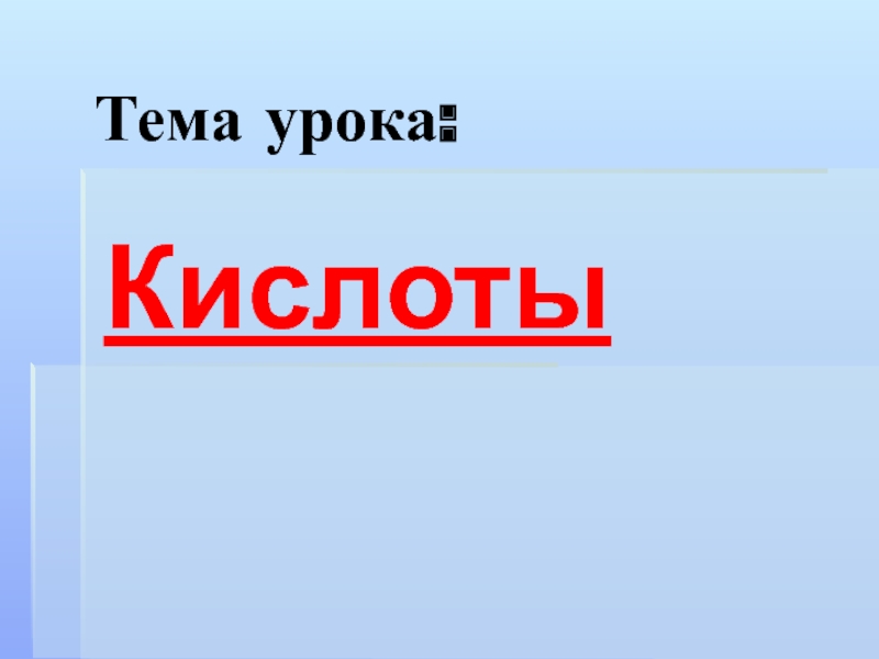 ЗАДАЧИ УРОКА:сформировать понятие о кислотах;уяснить их состав, номенклатуру, рассмотреть