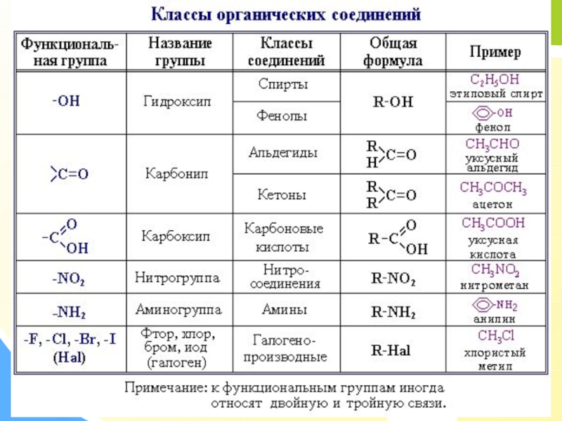 В зависимости от природы функциональных групп органические соединения делят на классы.