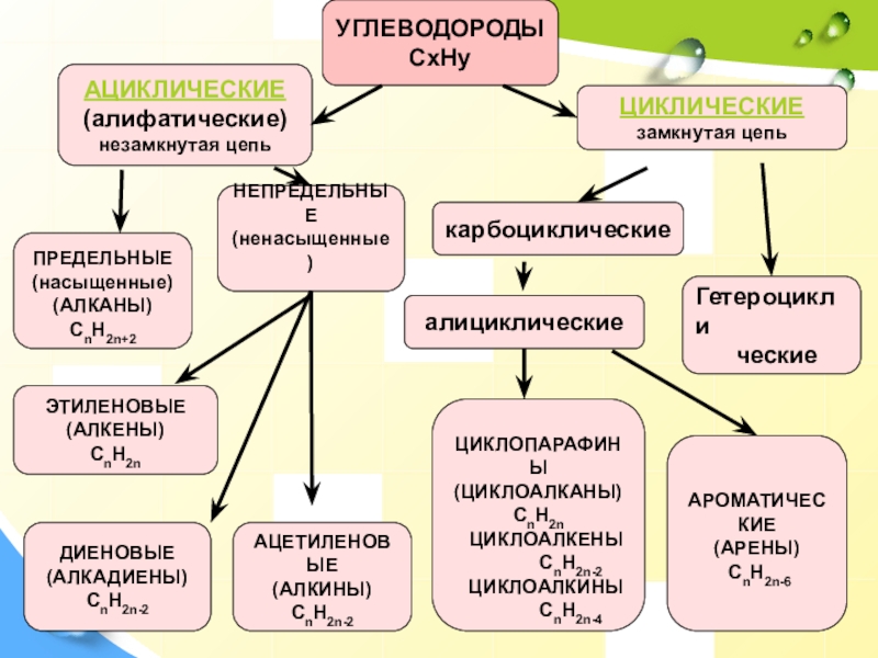 Другие, более многочисленные, органические соединения можно рассматривать как производные углеводородов, которые образуются при введении в углеводороды функциональных групп, содержащих другие элементы.