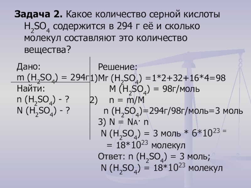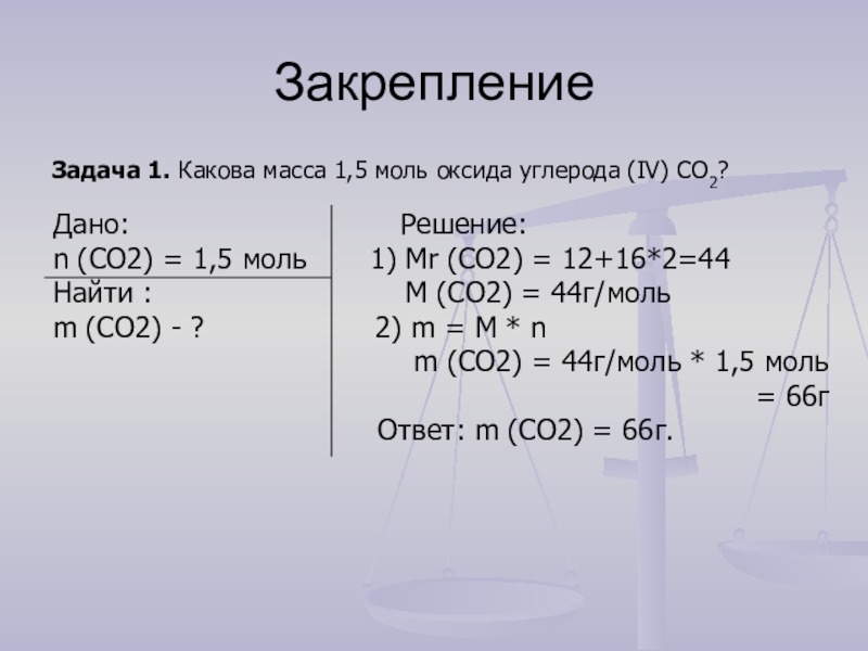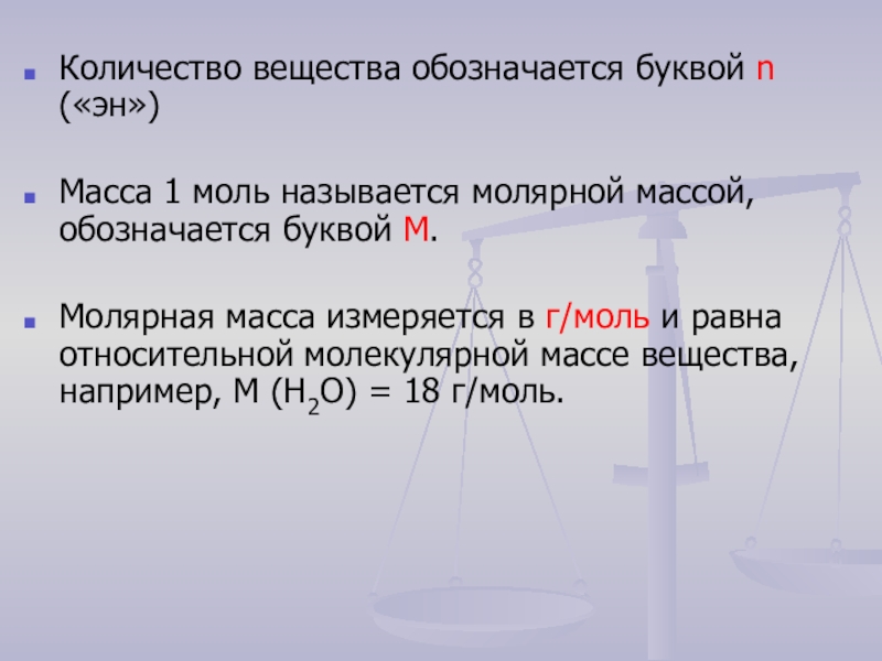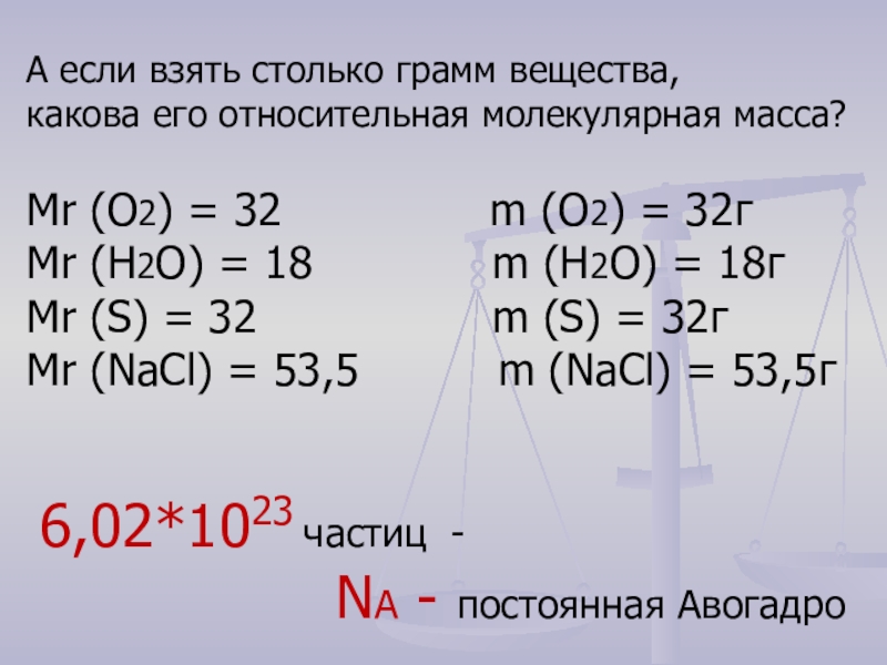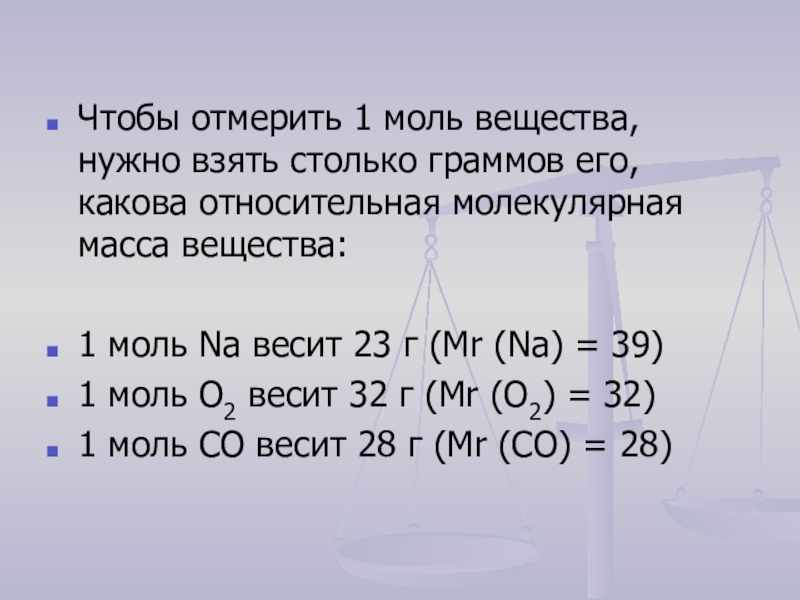 Моль – это количество вещества, содержащее число частиц равное числу (постоянной) Авогадро - 6,02*1023
