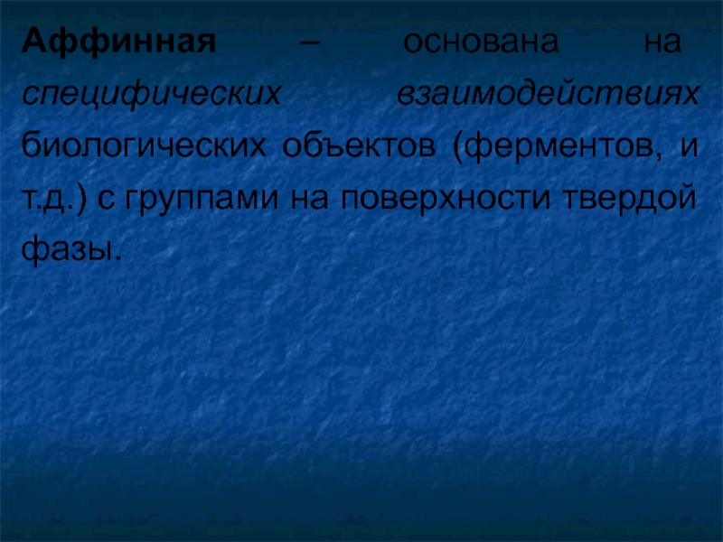 Слайд 13Аффинная – основана на специфических взаимодействиях биологических объектов (ферментов, и т.д.)