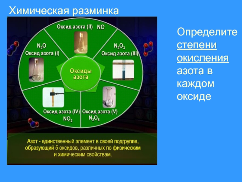 Химическая разминка  Определите степени окисления азота в каждом оксиде