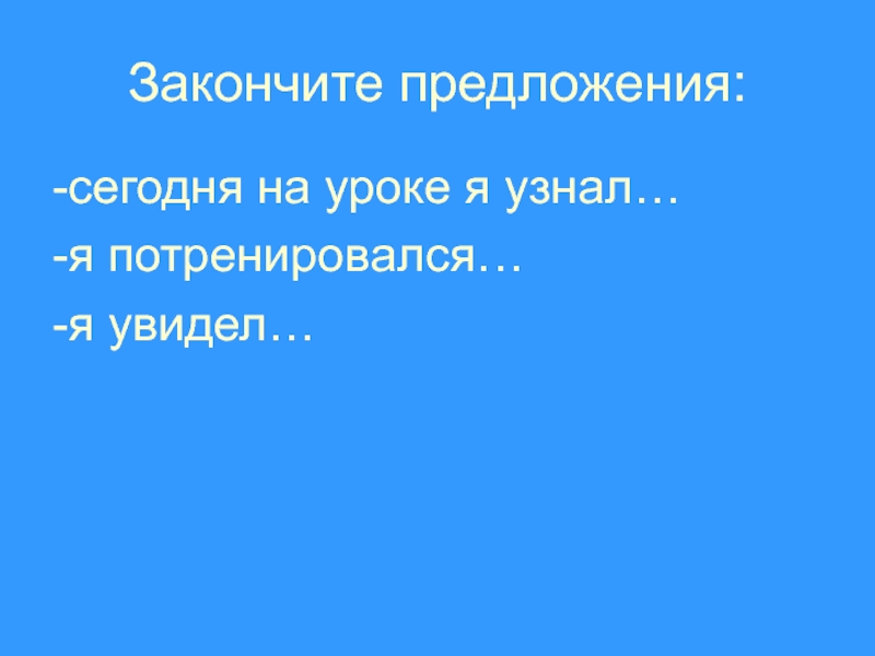 Закончите предложения:-сегодня на уроке я узнал…-я потренировался…-я увидел…