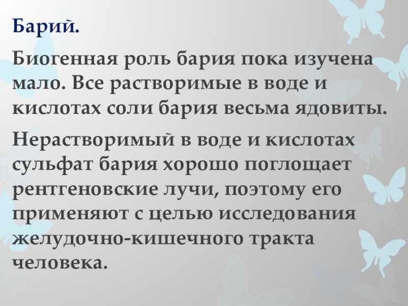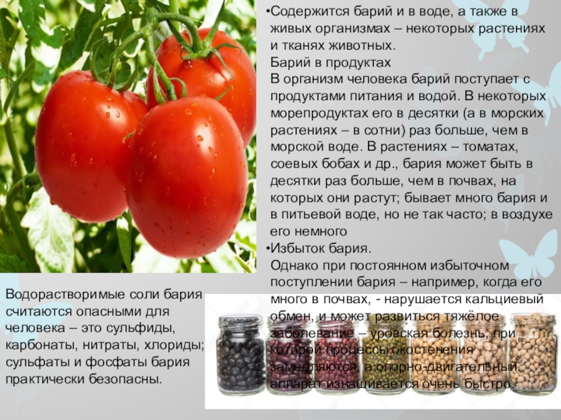 Водорастворимые соли бария считаются опасными для человека – это сульфиды, карбонаты, нитраты, хлориды; сульфаты и фосфаты бария практически безопасны.