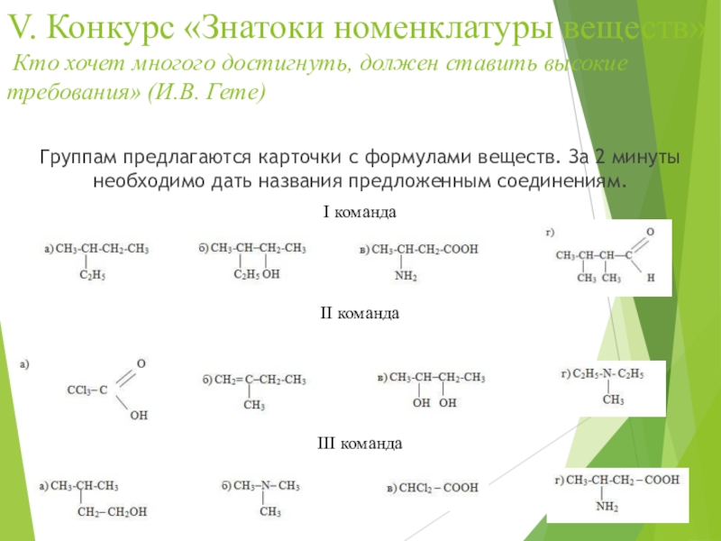 Слайд 11V. Конкурс «Знатоки номенклатуры веществ»
