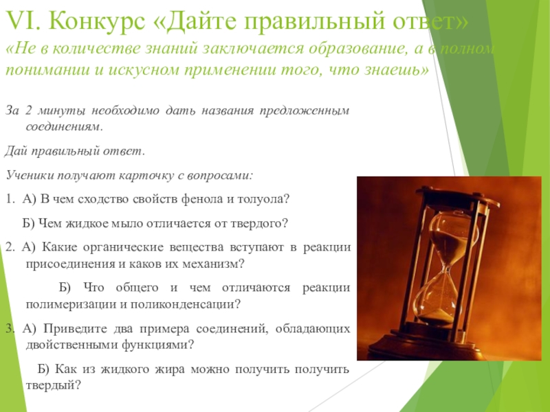 Слайд 13VI. Конкурс «Дайте правильный ответ»