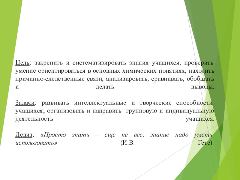 Девиз: «Просто знать – еще не все, знание надо уметь использовать» (И.В. Гете).