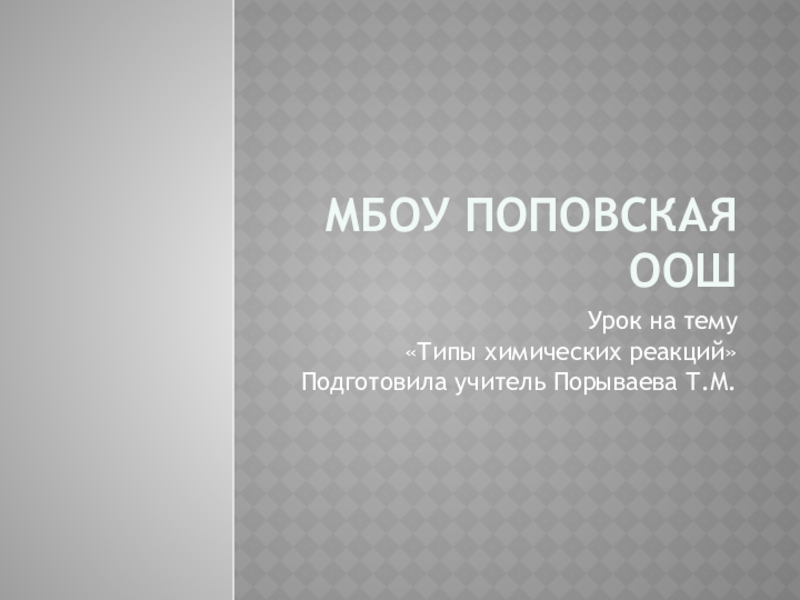 МБОУ Поповская ООШУрок на тему «Типы химических реакций»Подготовила учитель Порываева Т.М.