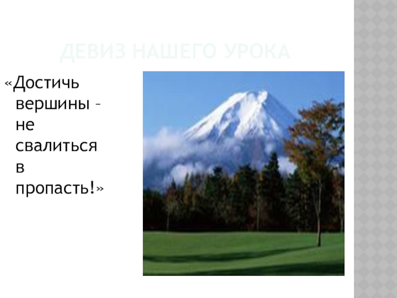 Девиз нашего урока«Достичь вершины – не свалиться в пропасть!»